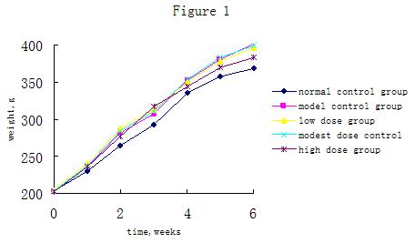 圣特莱清肝脂对各组大鼠体重影响 ( 表1)